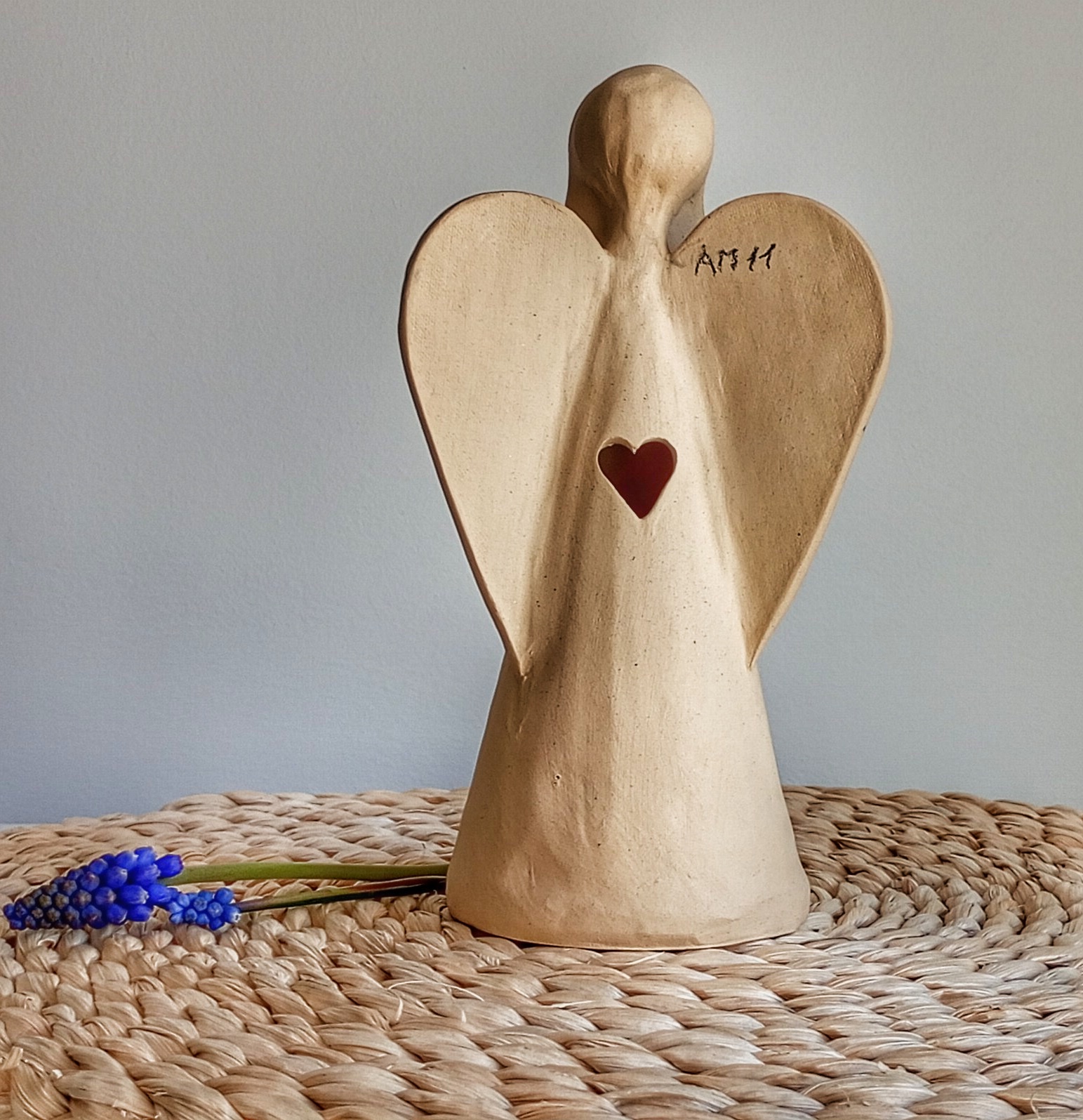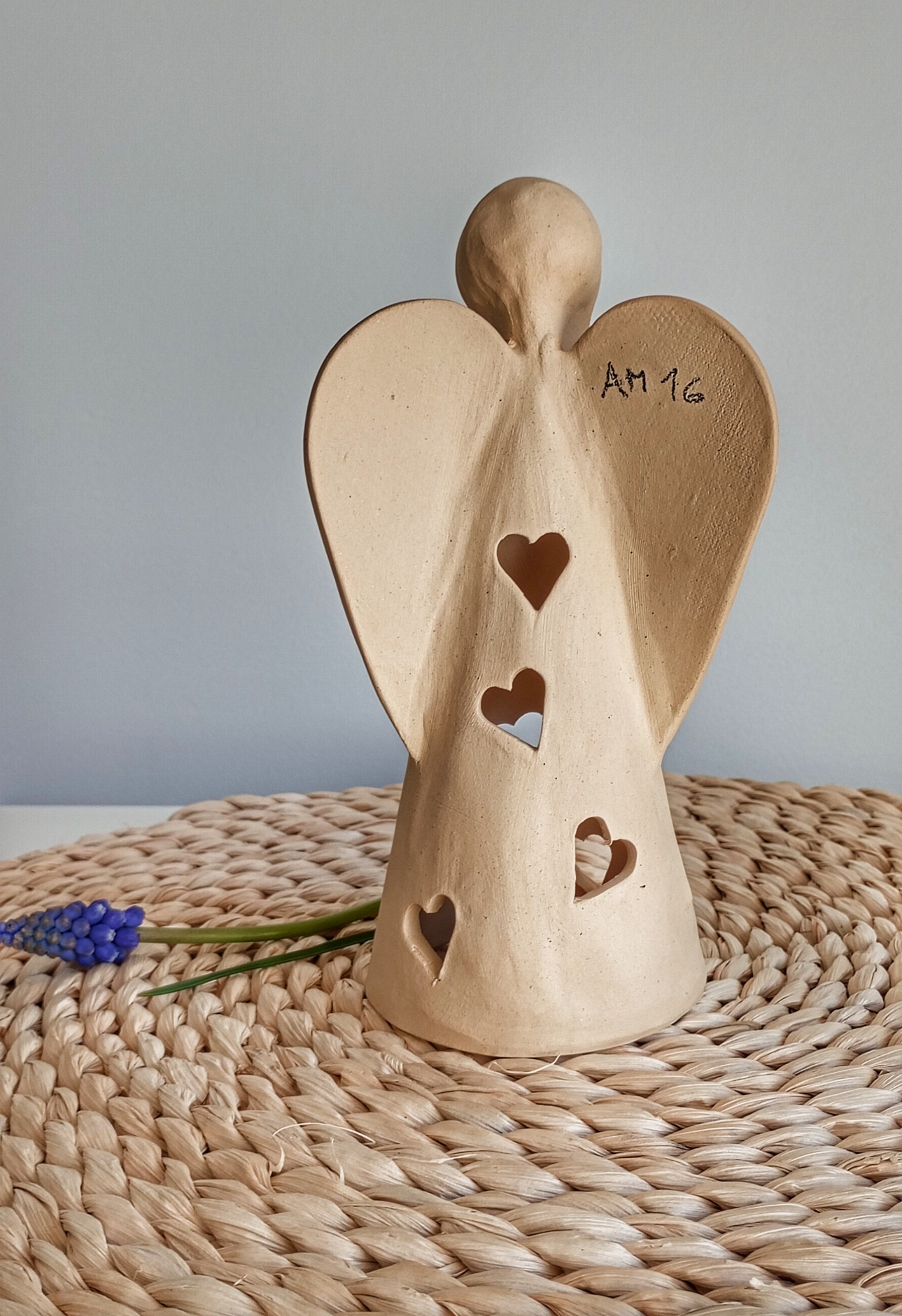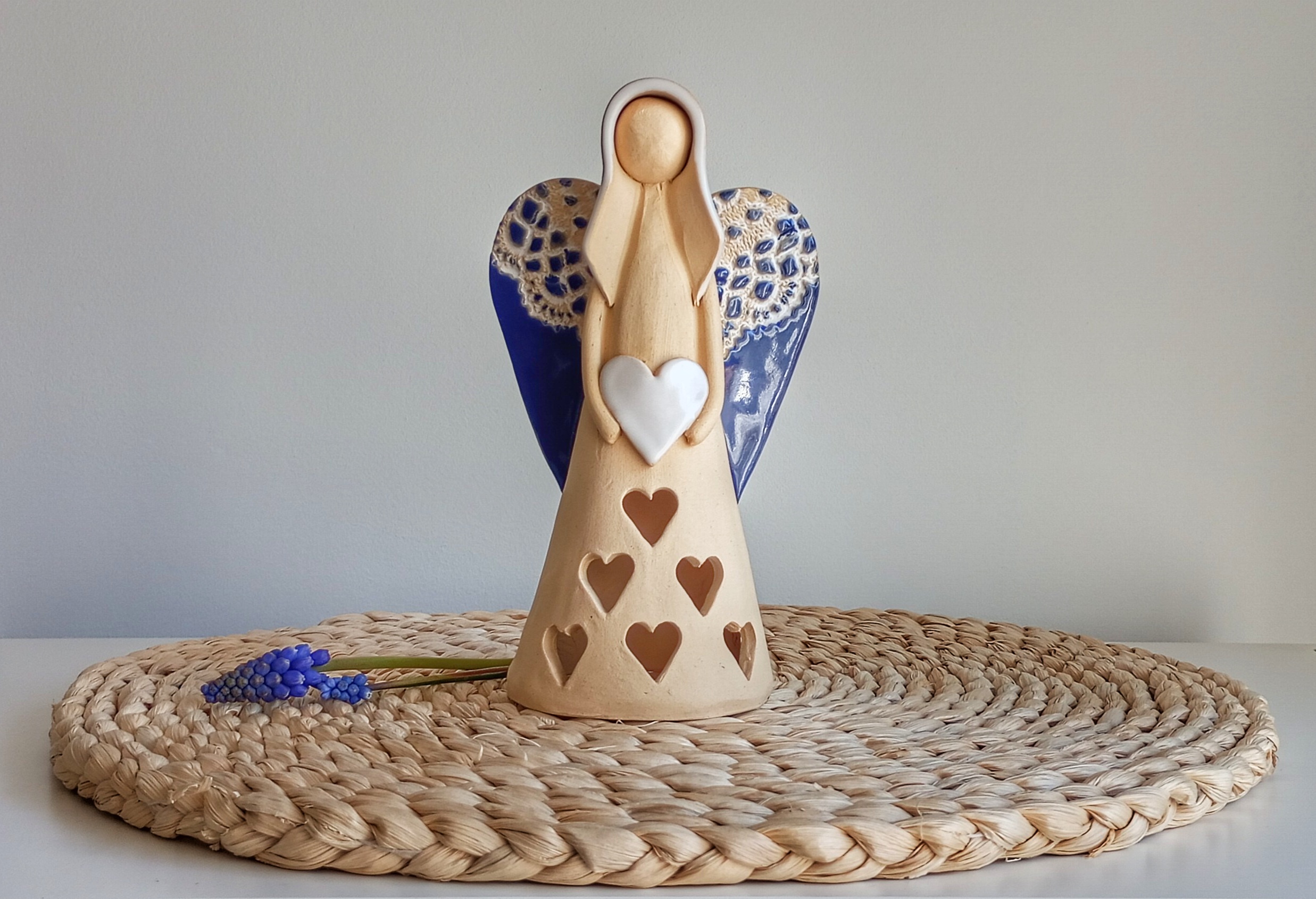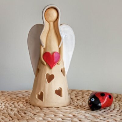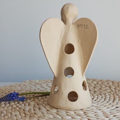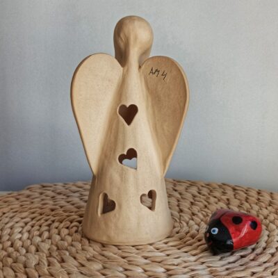 Keramický anděl je ručně modelovaný a malovaný.