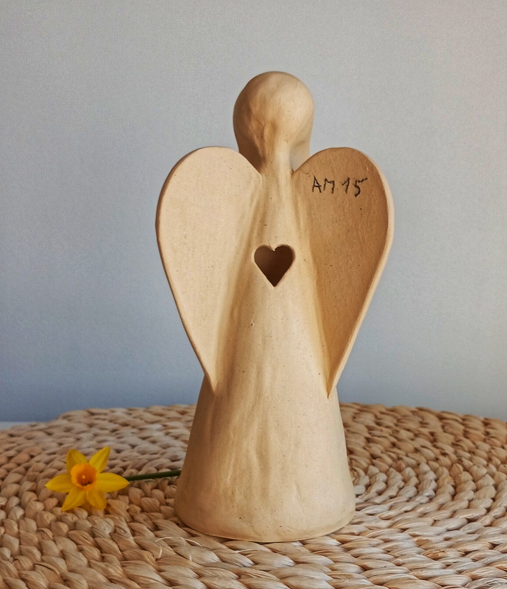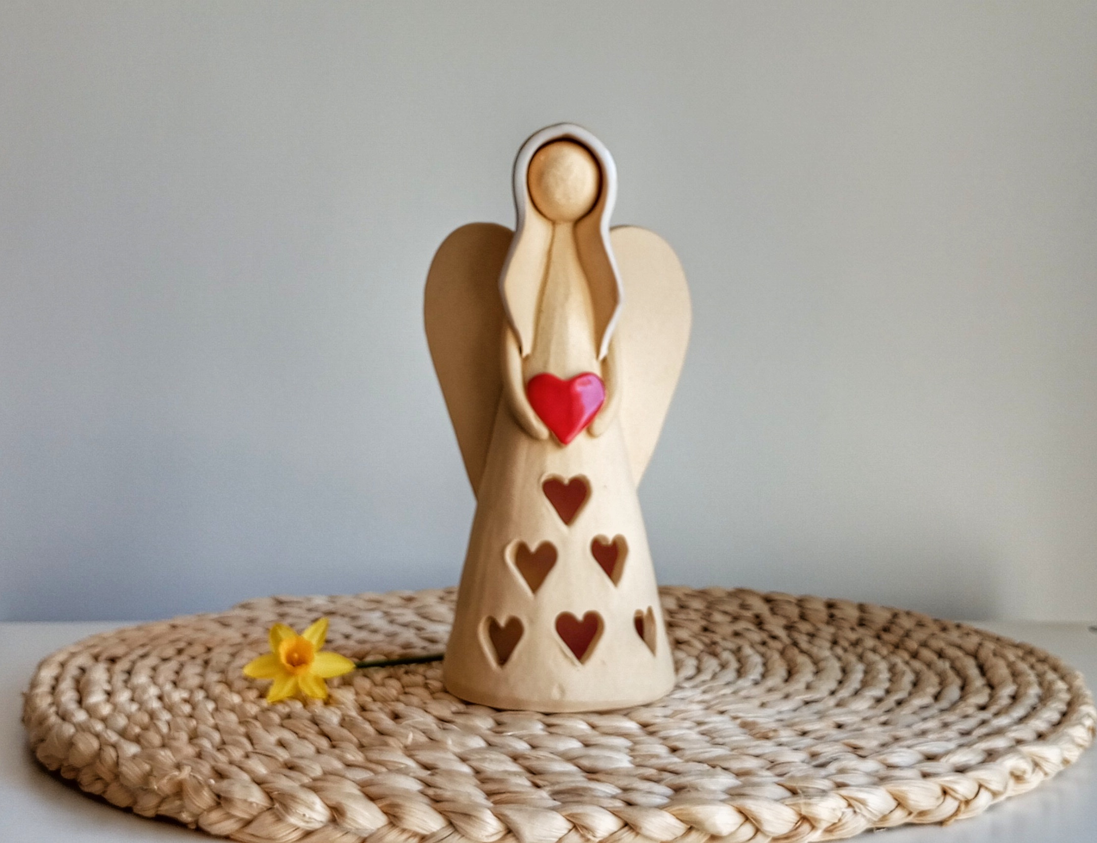 Keramický anděl je ručně modelovaný a malovaný.