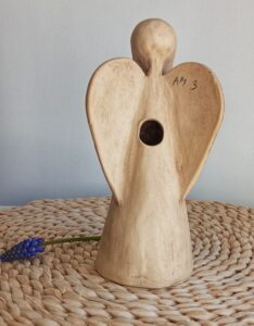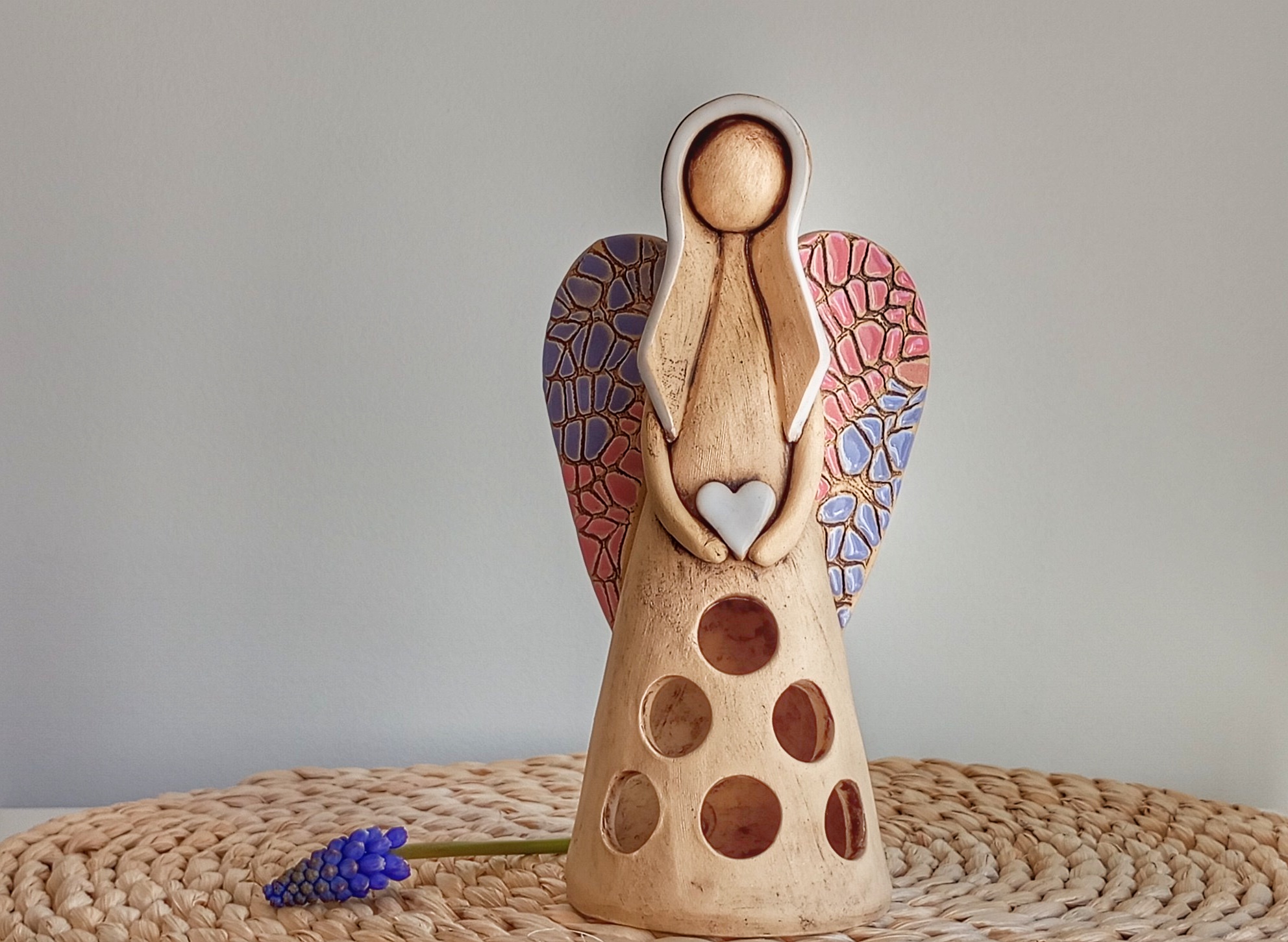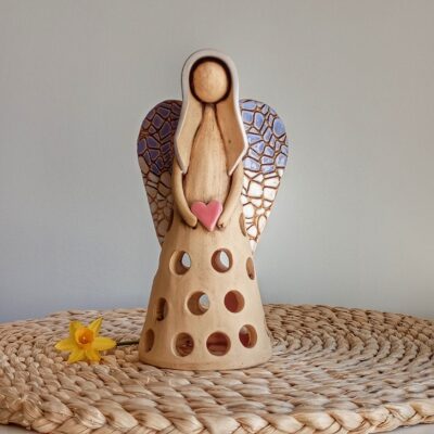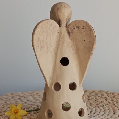 Keramický anděl je ručně modelovaný a malovaný.