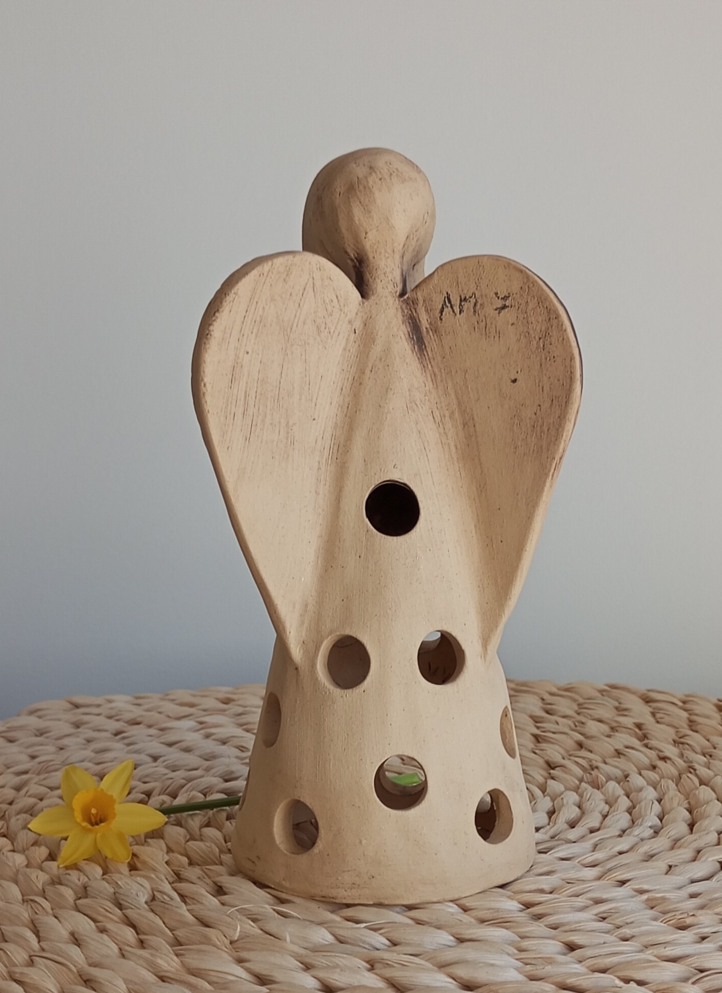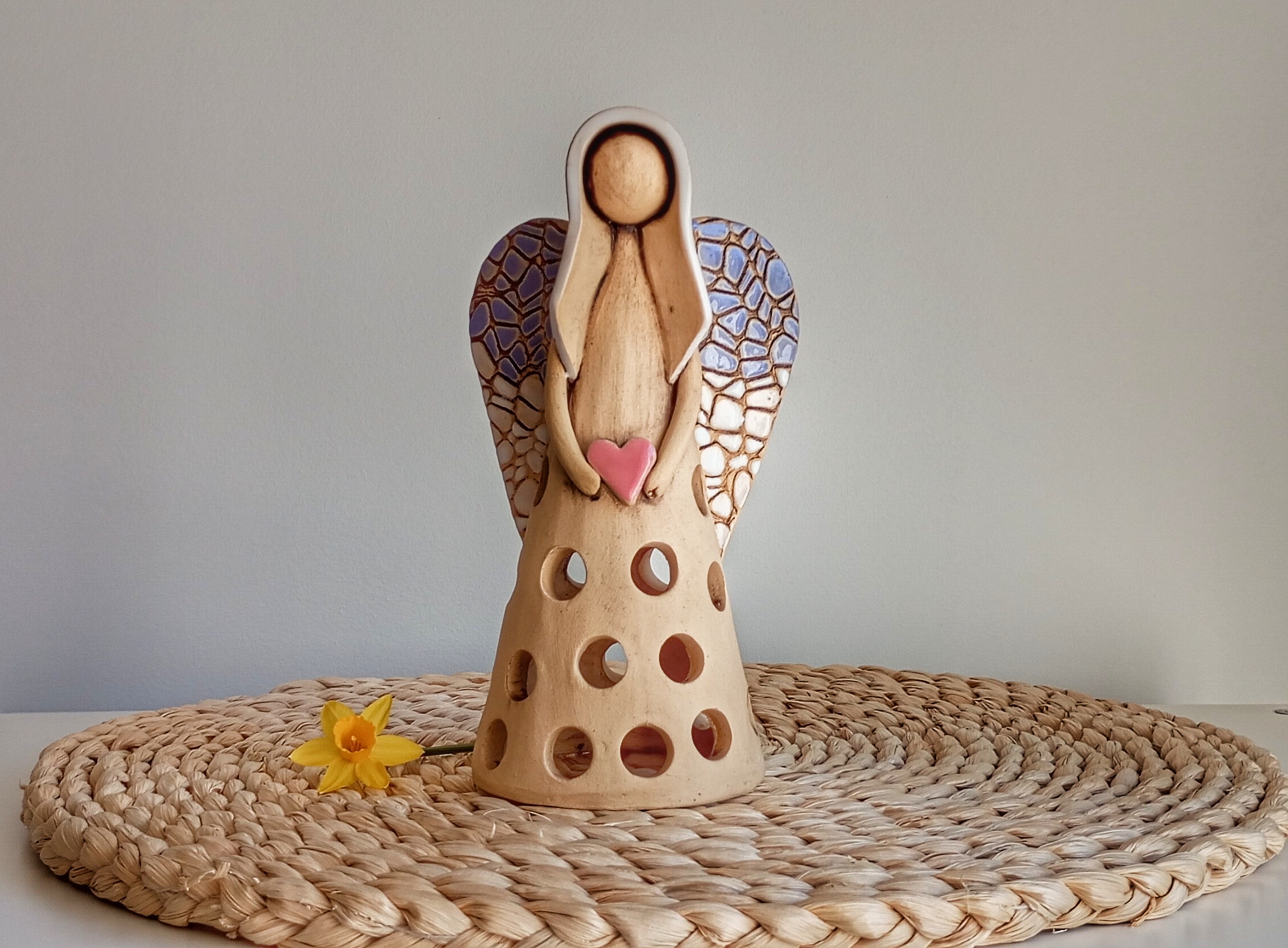 Keramický anděl je ručně modelovaný a malovaný.