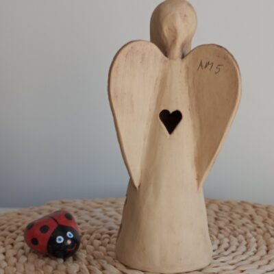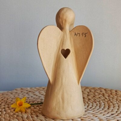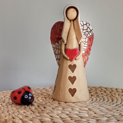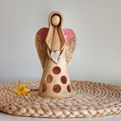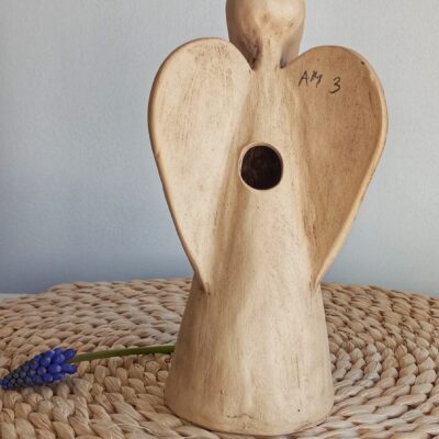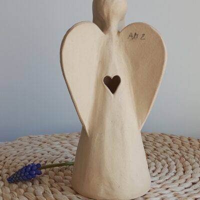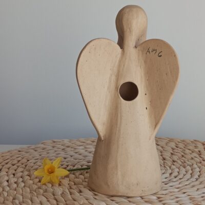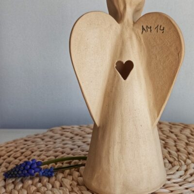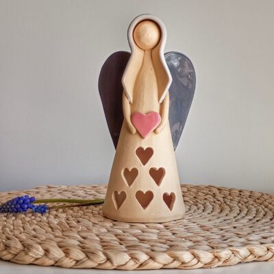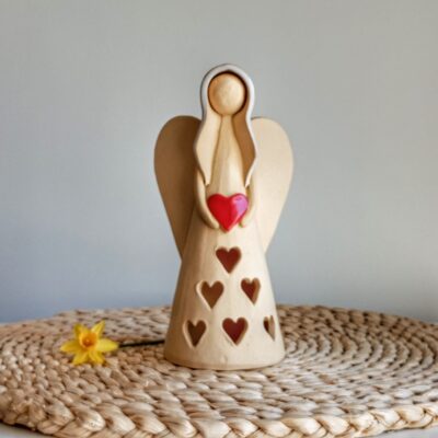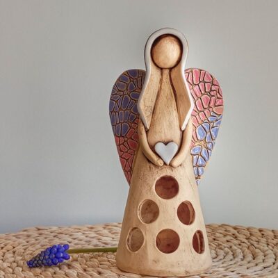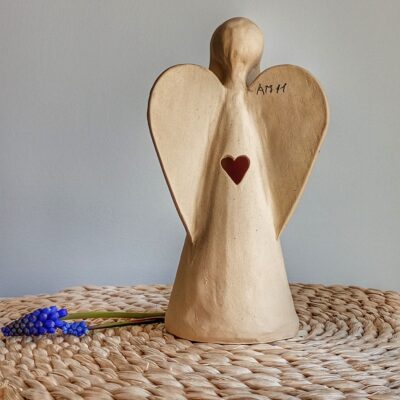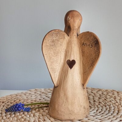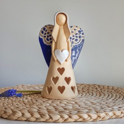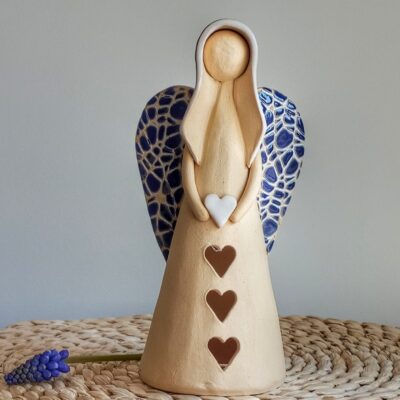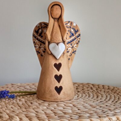 Keramický anděl je ručně modelovaný a malovaný.