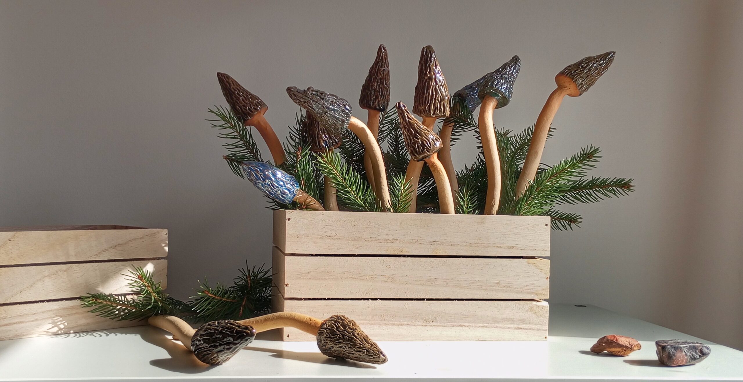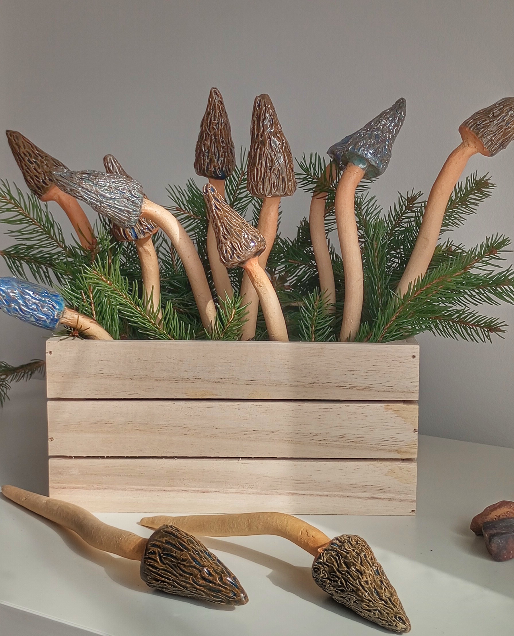 Dekorativní houba – SMRŽ je vyrobená z šamotové hlíny a může být celoročně venku.